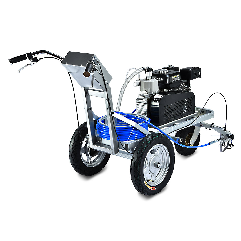 HYVST SPLM 850 - машина для нанесения дорожной разметки краской. Разметочная машина с одним пистолетом предназначена для нанесения сплошных и прерывистых линий краской на дорогу, разметки пешеходных переходов, нанесения дорожных знаков и надписей на дорогу, разметки парковочных мест около магазинов и выставочных залов, разметки спортивных площадок и футбольных полей. Разметочную машину можно использовать только с краской, пригодной для безвоздушного распыления. Также машину можно использовать для разметки дорожных бордюров, мостовых конструкций, столбов фонарного освещения, можно также ее использовать как бензиновый окрасочный агрегат и красить фасады зданий и бетонные заборы.