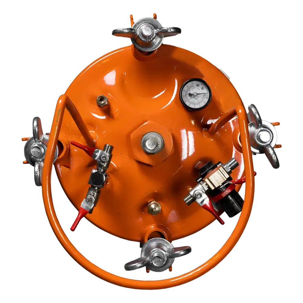 - Камера для лакокрасочного материала объёмом в 20 литров, выполненная из нержавеющей стали. Ёмкость имеет цельную конструкцию (изготовлена методом литья), что многократно увеличивает прочность на разрыв в сравнении камерами, имеющими сварные швы.