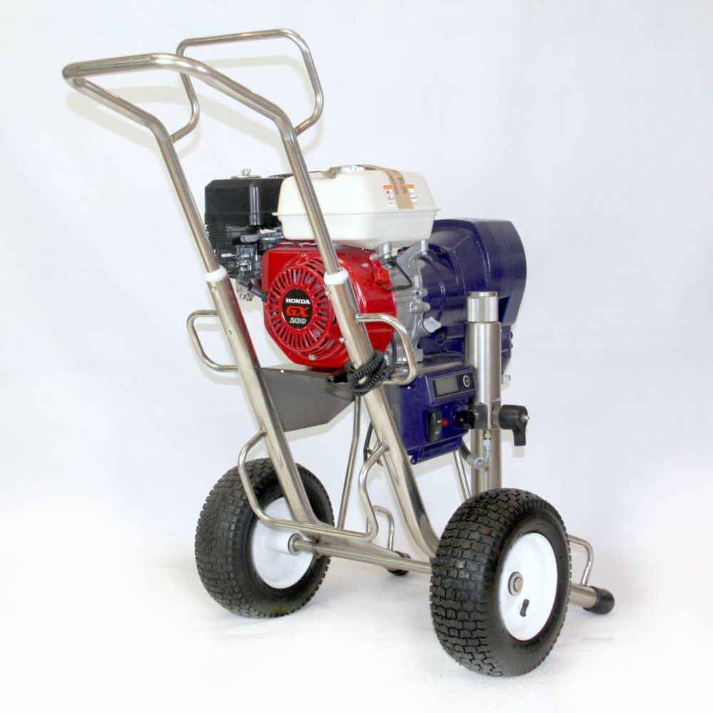 Безвоздушный окрасочный аппарат с бензиновым приводом PremJet PJ 8341G предназначен для профессионального применения ЛКМ высокой вязкости с содержанием абразивов для грунтования и окраса больших объёмов в промышленности и на производстве, для нанесения полимерной шпатлёвки, огнезащитных и двух компонентных составов с одновременным применением двух краскораспылителей