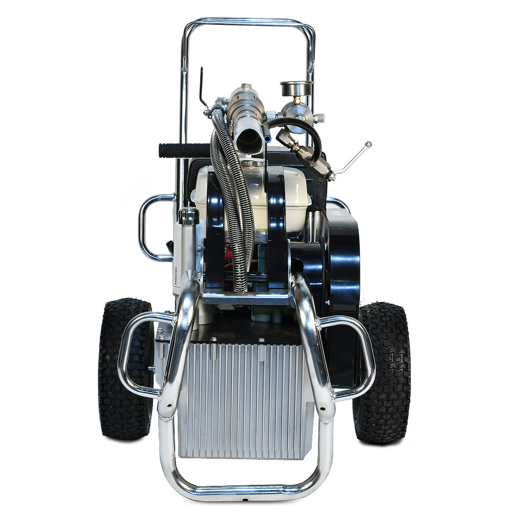 • работа на бензине: позволяет выполнять окраску в условиях отсутствия электросетей;