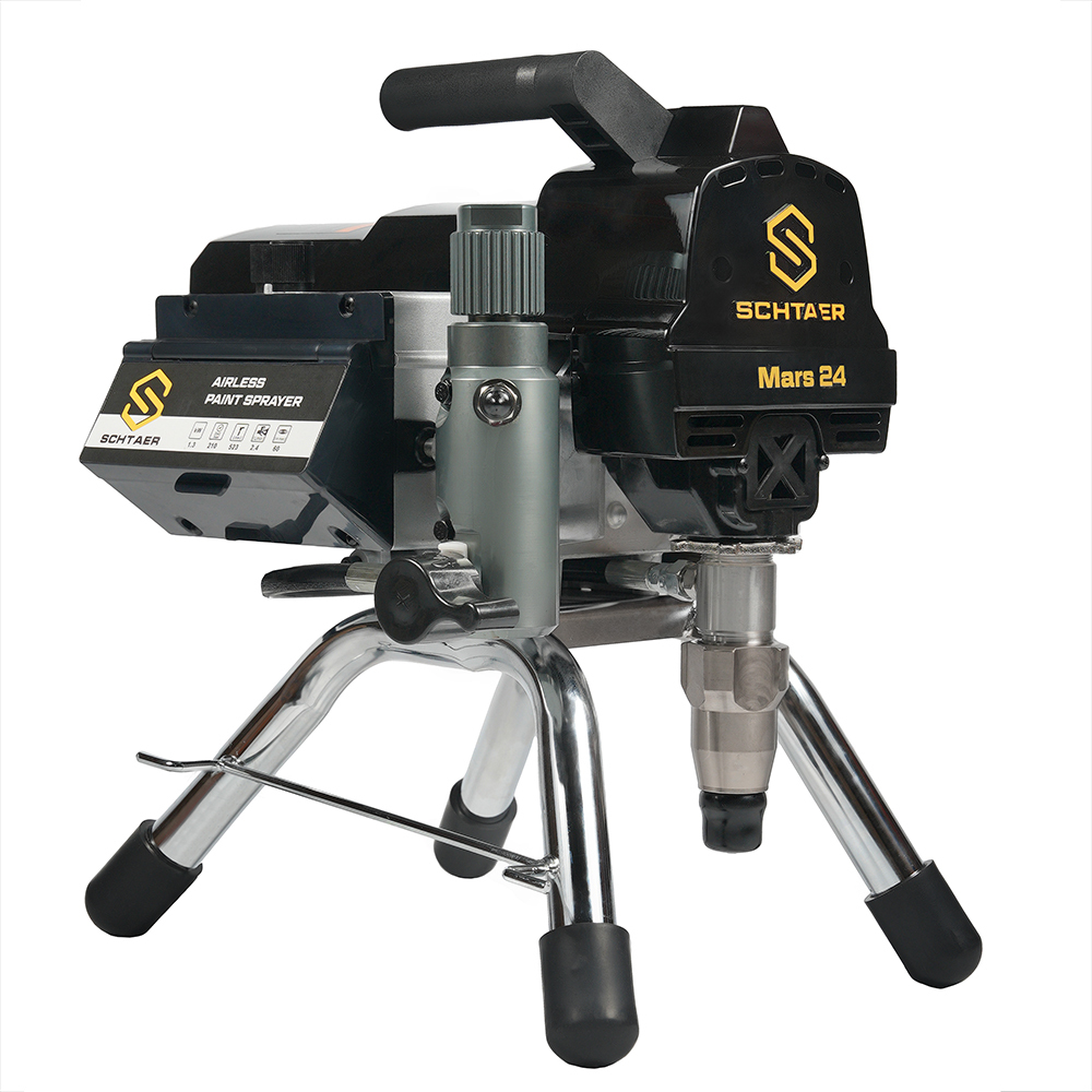 Schtaer Mars 24 – компактный легкий поршневой окрасочный аппарат с фильтром материала, электронной регулировкой давления и бесщеточным мотором.