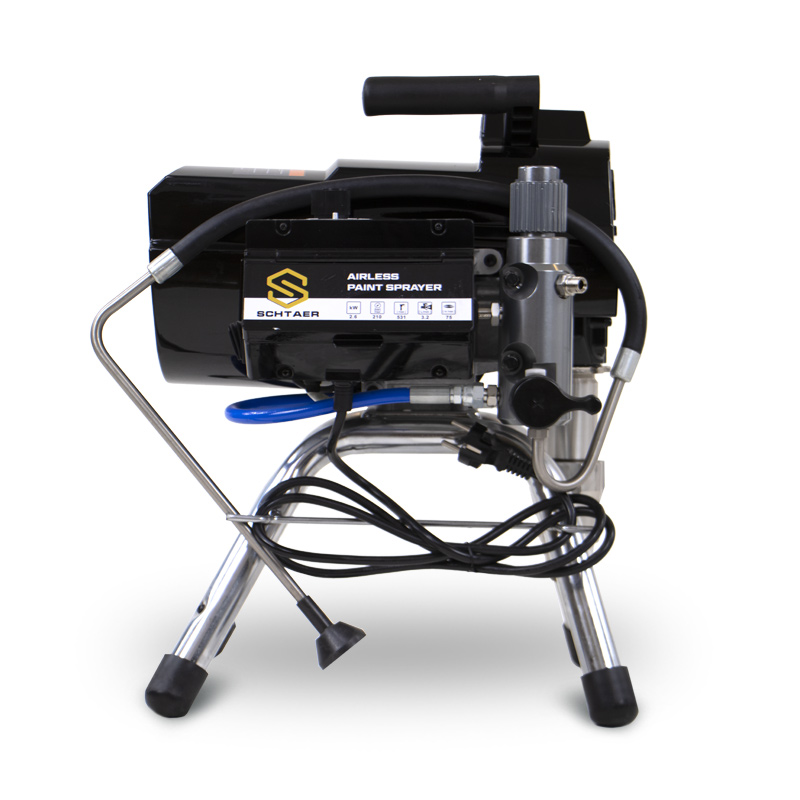 Sсhtaer Saturn 32 — окрасочный аппарат безвоздушного распыления используется для работы на строительной площадке, для покраски фасадов, стен и потолков, грунтовки и окраски металлоконструкций, и покраски деревянных стен и заборов. Поршневой окрасочный аппарат забирает краску из ведра и подает ее по шлангу высокого давления на краскопульт.