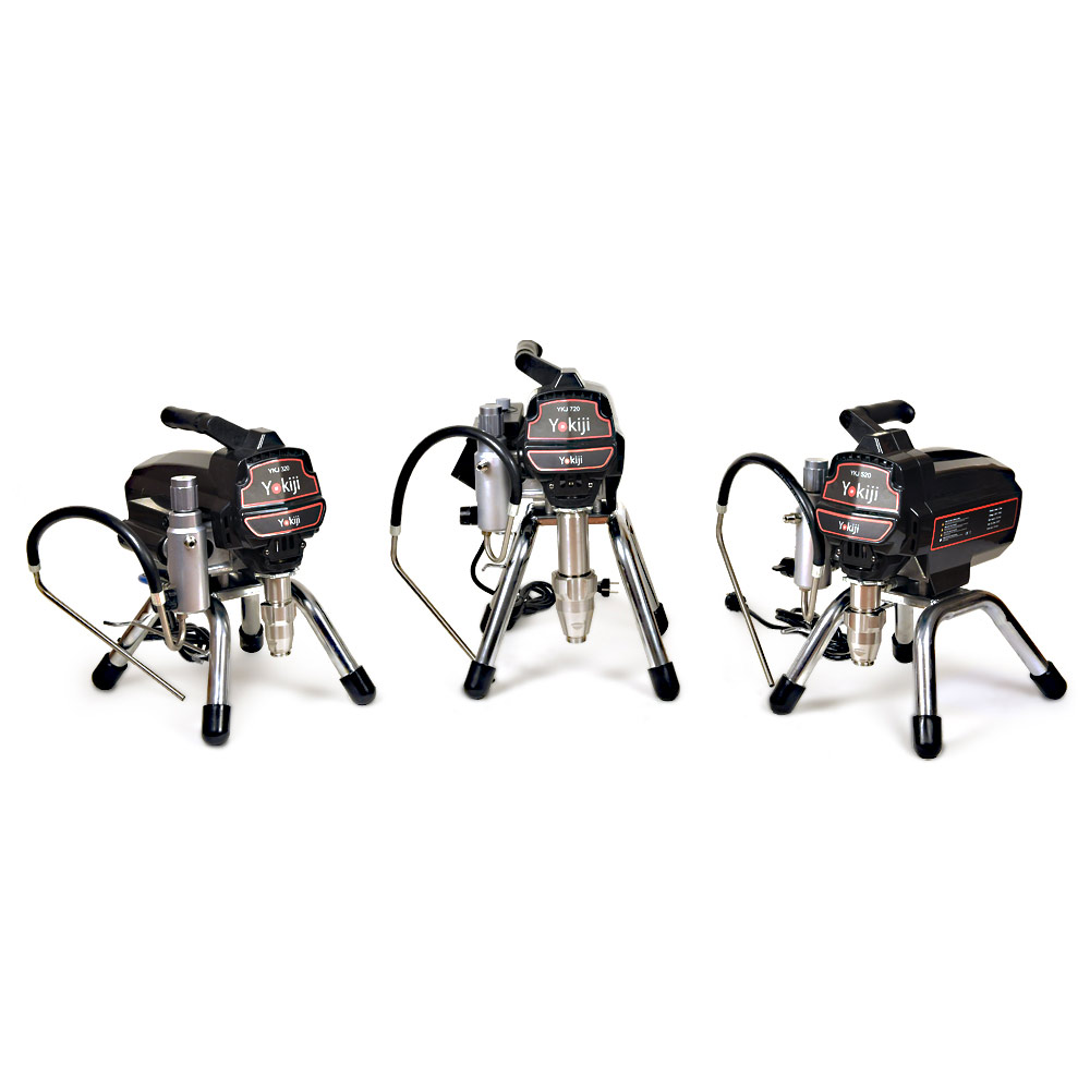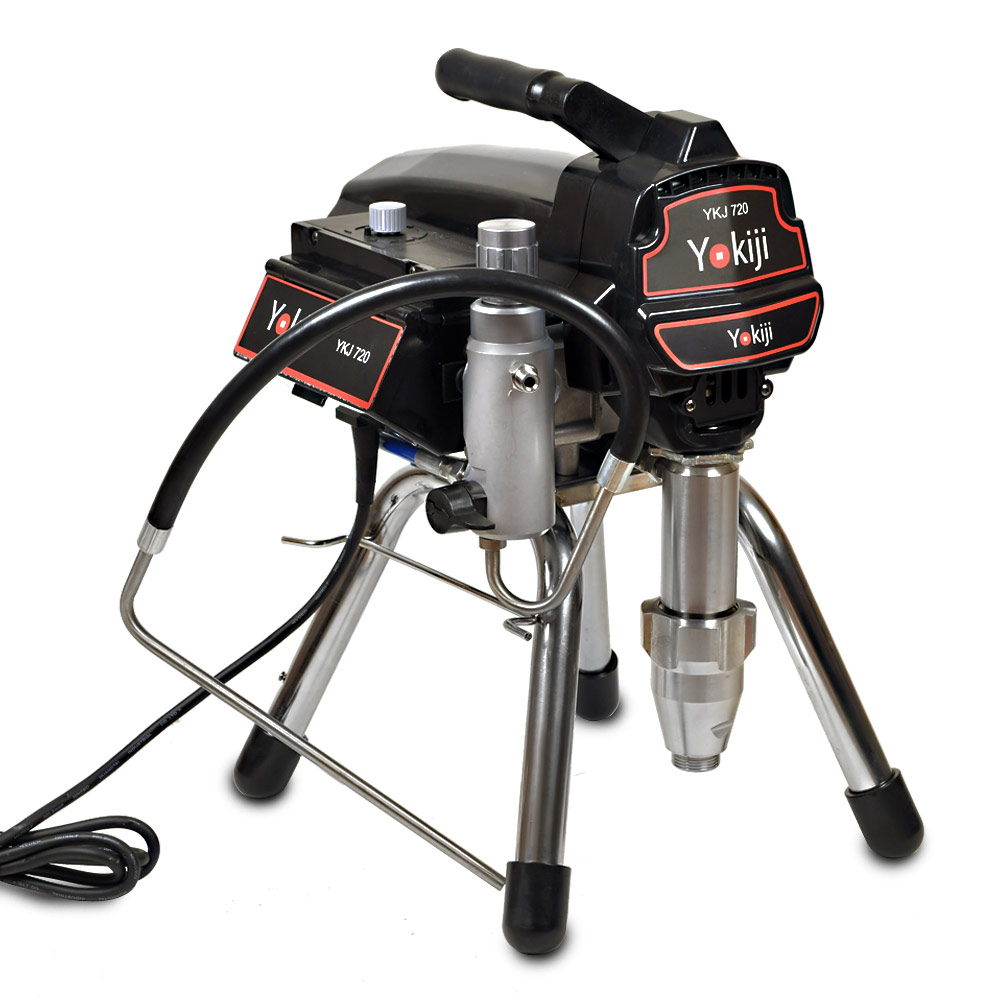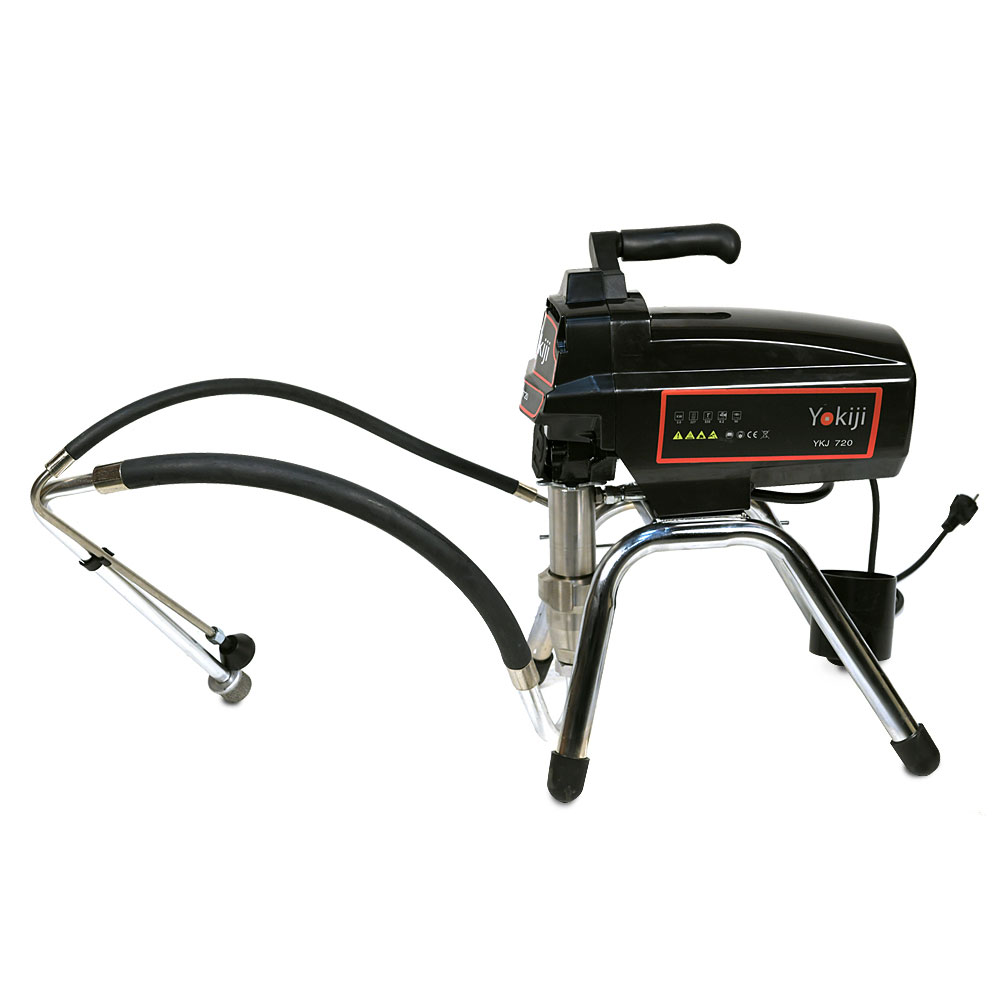 YOKIJI YKJ 720.1 – компактный поршневой безвоздушный окрасочный аппарат с удлиненным поршнем; предназначен для высококачественной интерьерной окраски: работает с интерьерными красками низкой и средней вязкости. Также применяется для окраски фасадов и металлических и деревянных конструкций. Аппарат работает по принципу безвоздушного распыления: материал подается от окрасочного агрегата через краскопульт для безвоздушного распыления под высоким давлением. YKJ 720.1 оснащен электронной регулировкой давления и дополнительным фильтром, установленным на корпусе окрасочного аппарата.