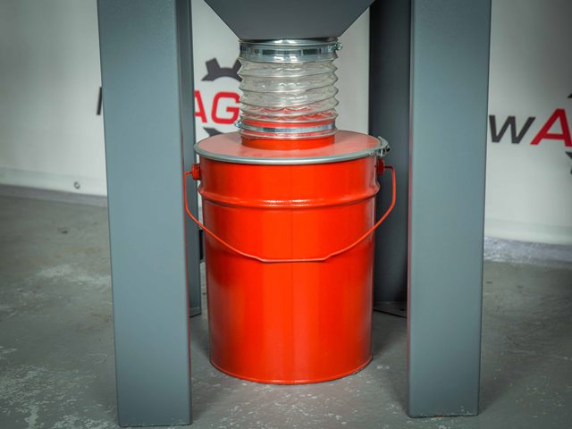 Отработанный воздух, удаленный из рабочей зоны абразивоструйной камеры, проходя через картридж из полиэстера, очищается и выбрасывается обратно в промышленное помещение.