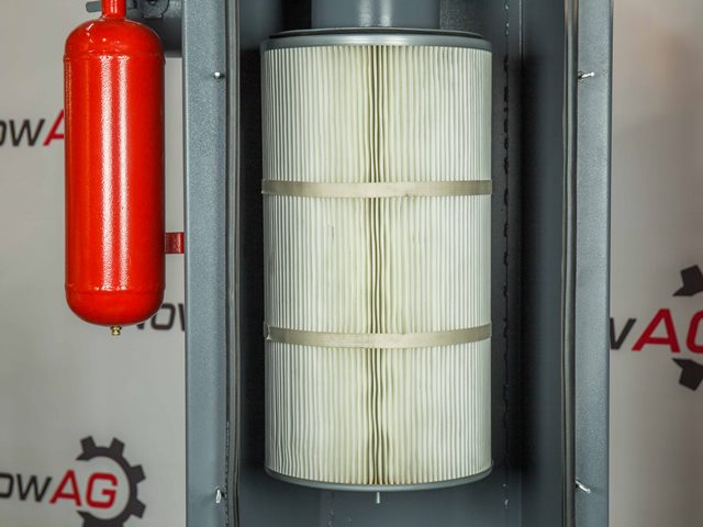 Фильтры оснащены вентилятором, который создает необходимое разряжение, сменным картриджем, устройством обдува пыли и контейнером для сбора пыли (пылесборником).
